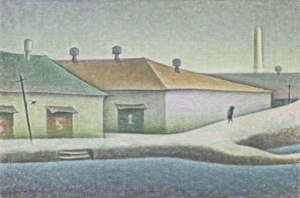 第1回現代日本美術展に「樽のある街」「橋の風景」を出品し、以後同展に出品を続ける。 |